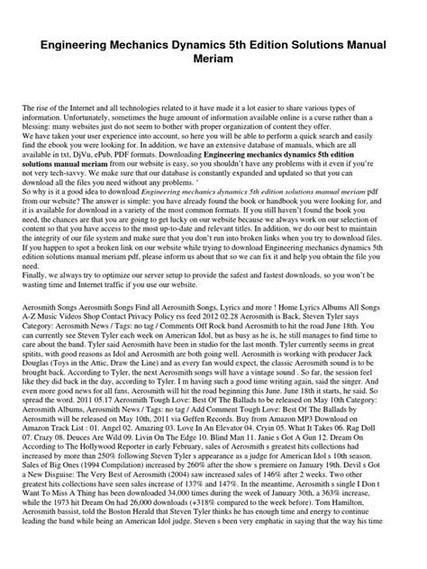 Read Online ENGINEERING MECHANICS DYNAMICS 5TH EDITION MERIAM SOLUTION rtf